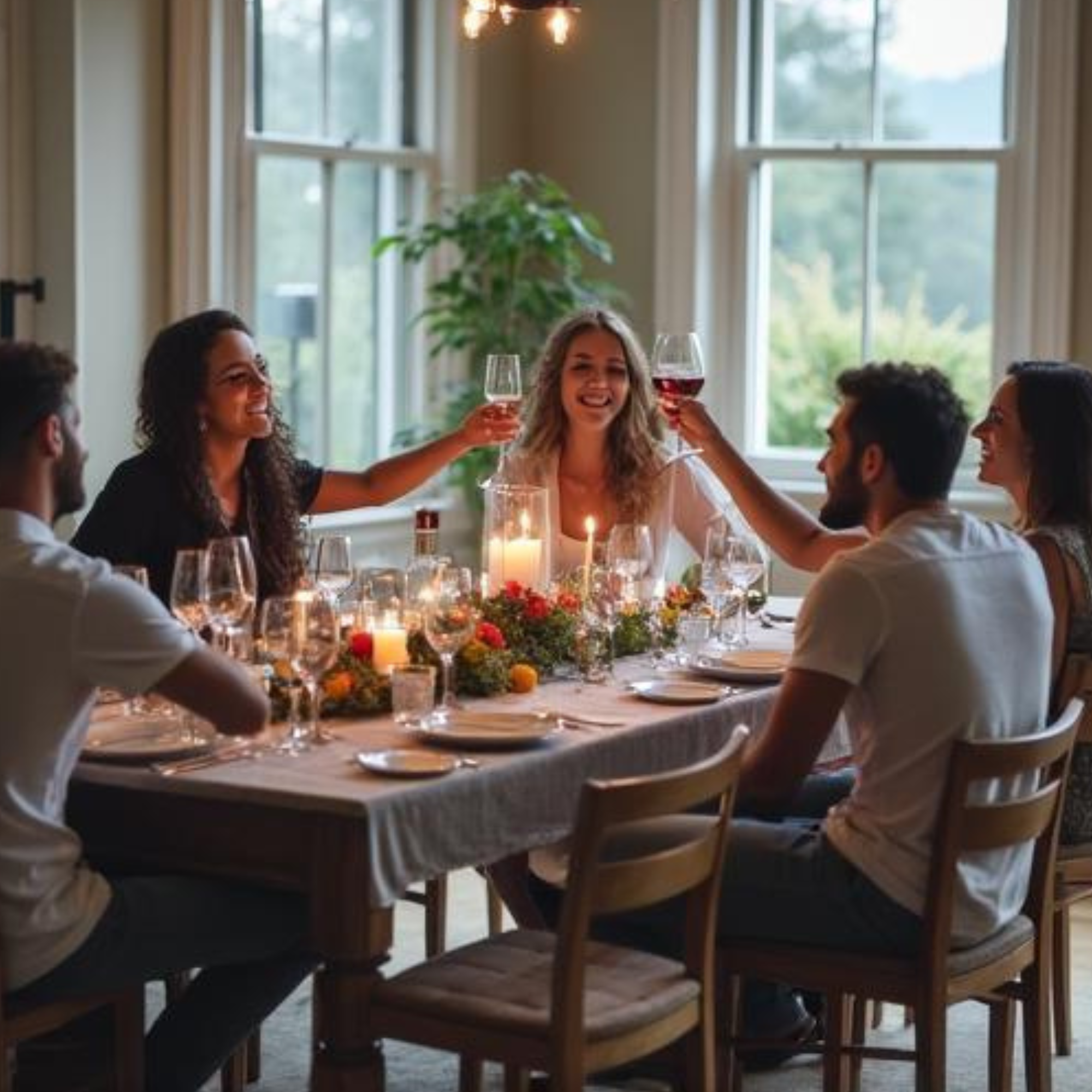Seasonal, shareable courses served family-style or communally, with a warm table setting of linens and candlelight. Perfect for birthdays, family celebrations, and intimate gatherings.